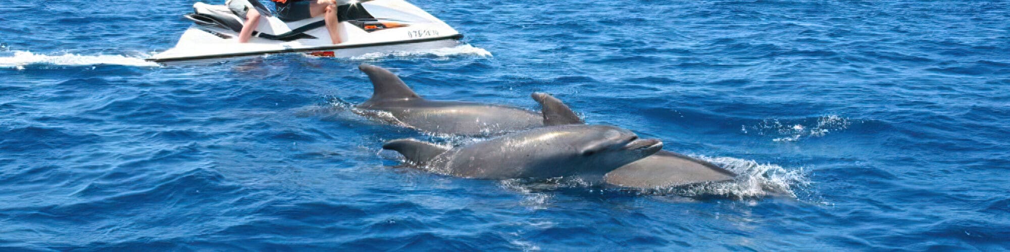 Become one with the dolphins on our waverunner guided dolphin tour!