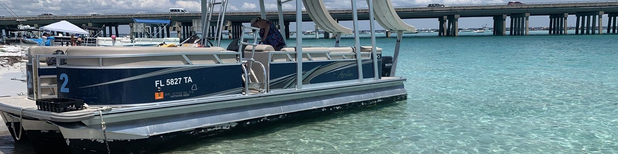 Experience the adventure of a lifetime at Destin’s one-of-a-kind Crab Island! Hop aboard one of Tipsy Tiki’s Pontoon Boats and set sail to this iconic destination where wildlife, including dolphins and sea turtles, thrive! At Crab Island, there’s something for everyone, including shallow swimming areas, playgrounds for the kids, and refreshing beverages at the full service bar for adults. Check out the availability for our double decker Pontoon boat!